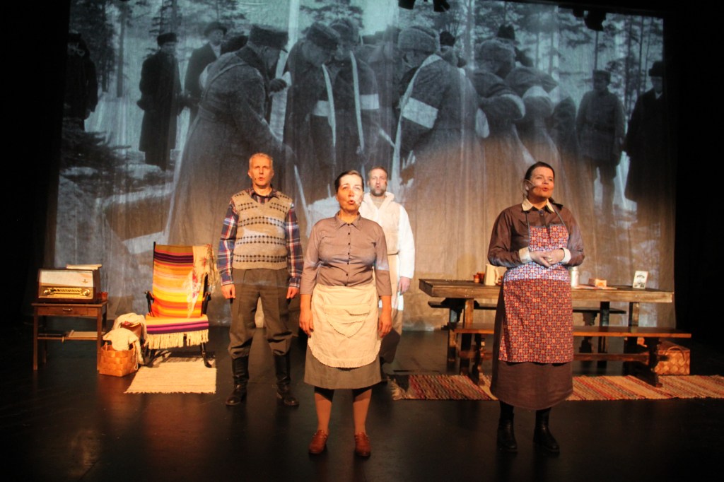 Osissa: Marjut Manninen (sotilaan äiti), Kaisa Rantala (sotilaan puoliso), Jouni Leppikorpi (karjalainen evakko) ja Jukka Lahtinen (sotilas)