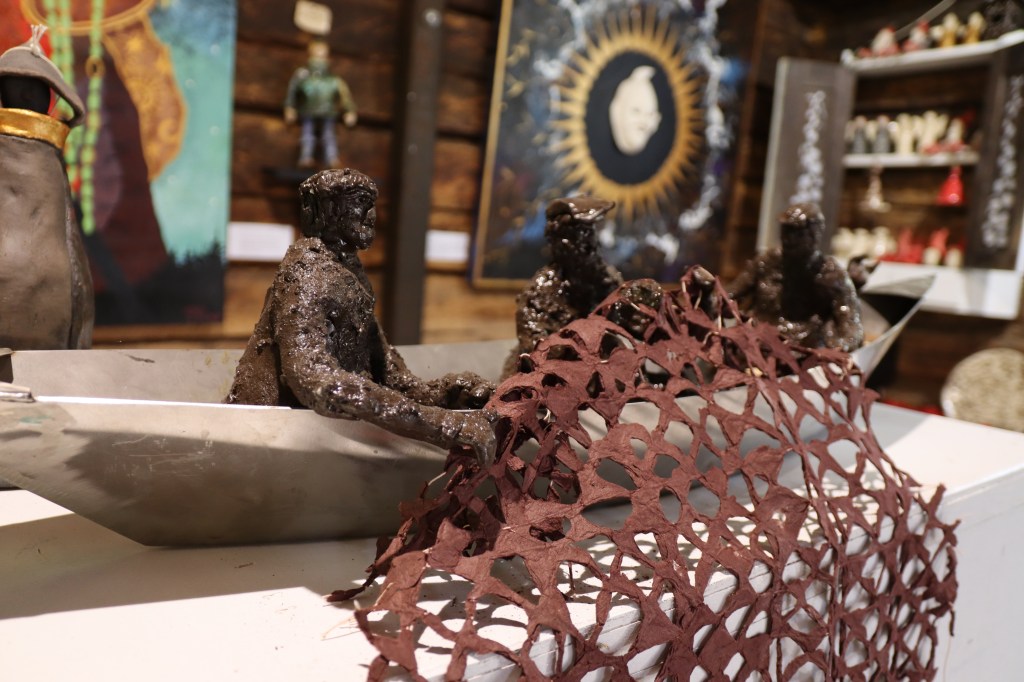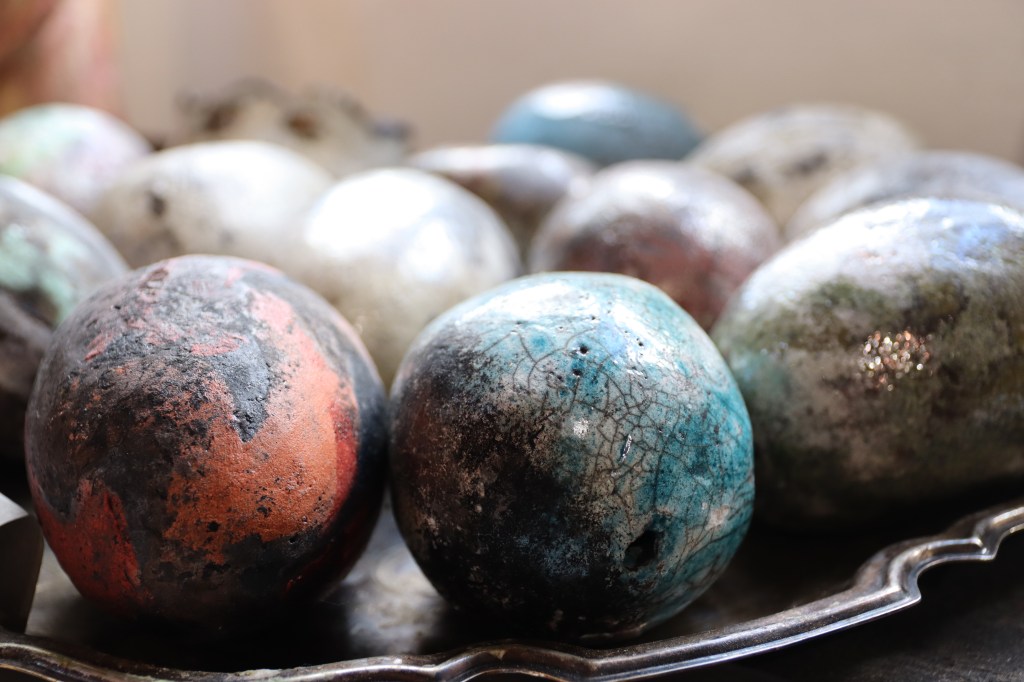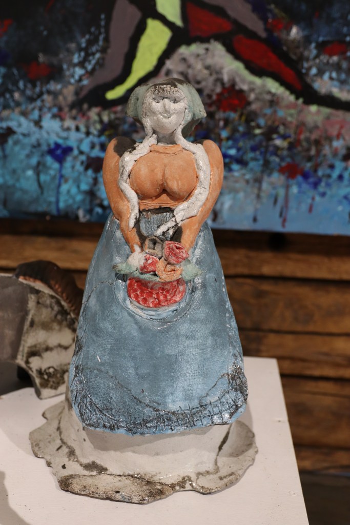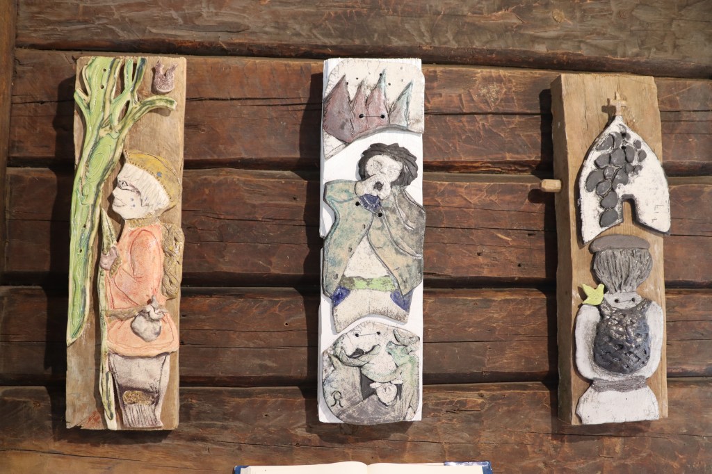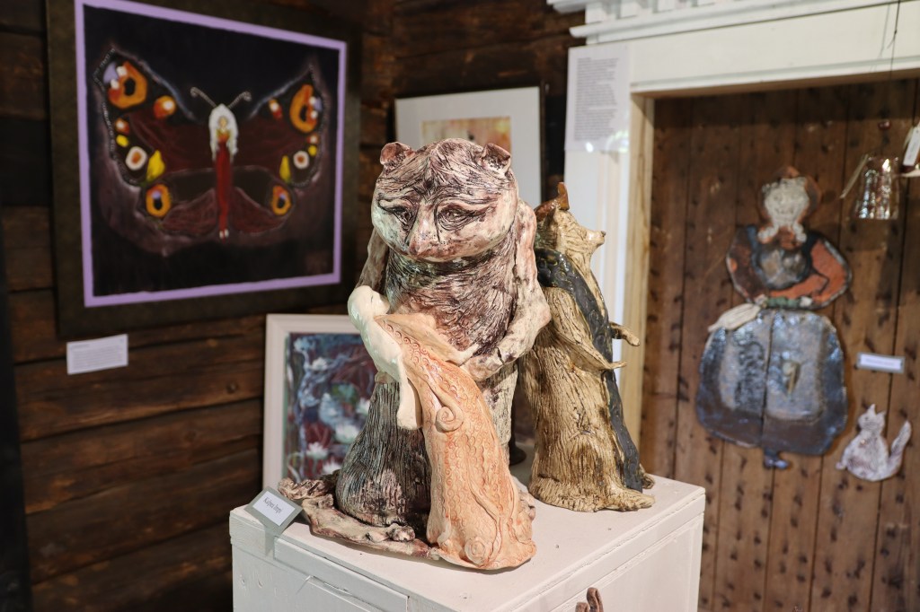 Päivi sanoo, että vanhojen tarinoiden lisäksi hänen taidettaan on ohjannut paljon myös itse paikka. Hattula on eräänlainen taidekokemus. Olen täsmälleen samaa mieltä. Perinteikkäässä ympäristössä, aistit avoinna taidetta kokien ja Päivin iloisesta ja sydämellisestä seurasta nauttien vierähtää helposti tovi jos toinenkin.