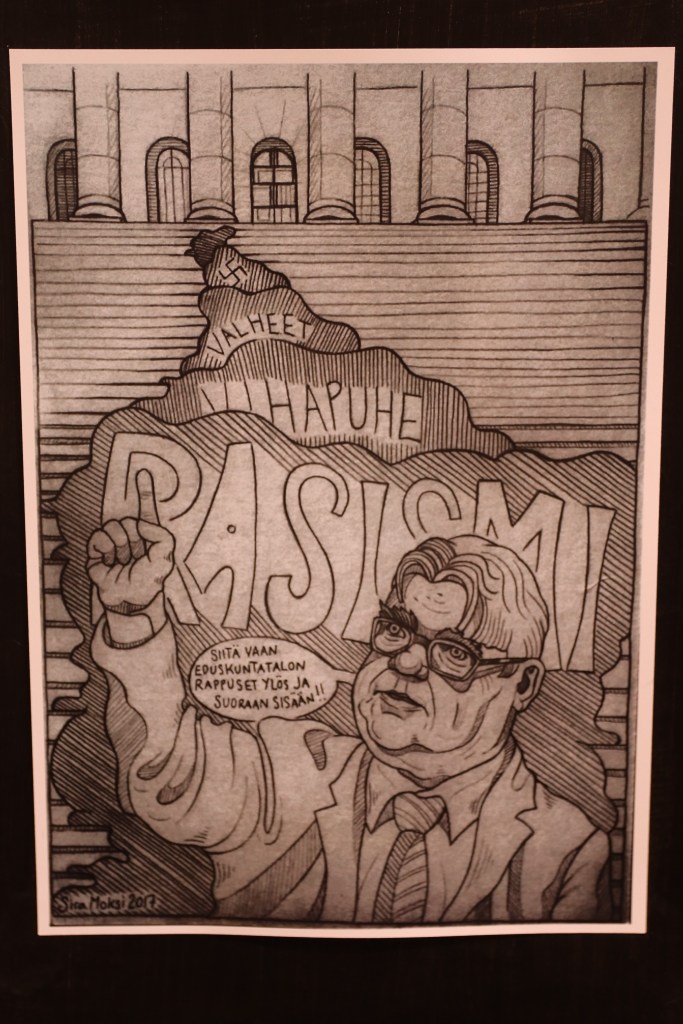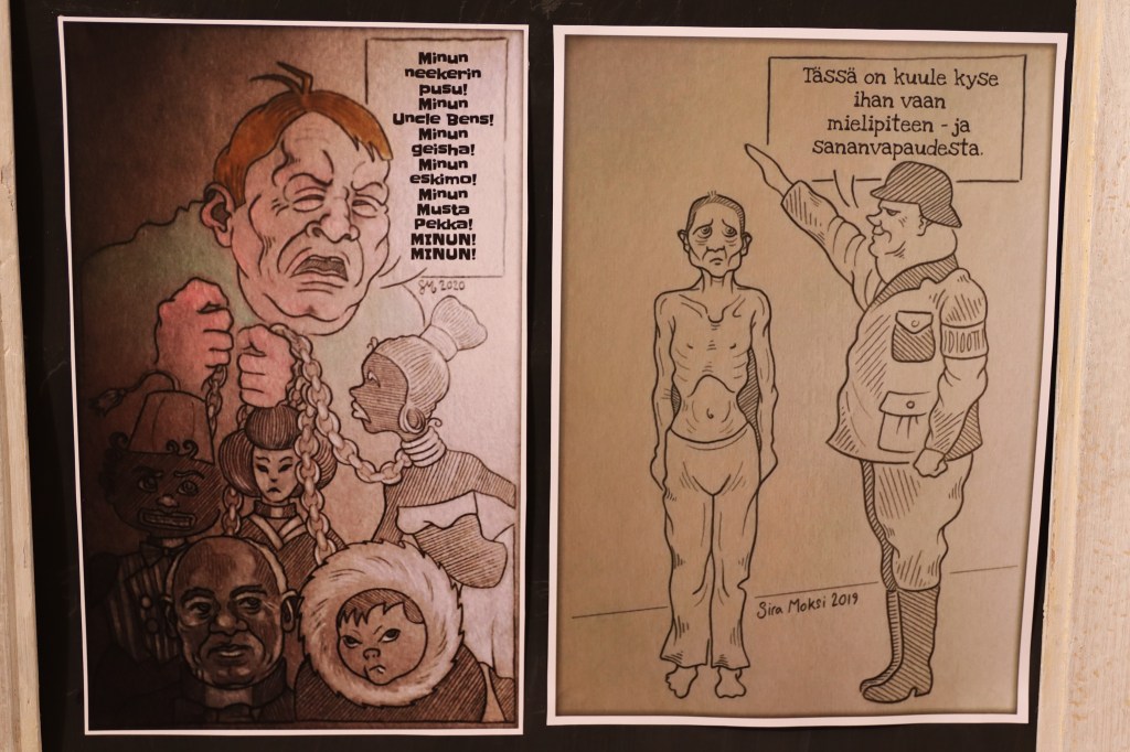 – Vuodesta 2015 olen piirtänyt poliittista satiiria. Sitä ennen olen kyllä tehnyt muutakin kuvataidetta, mutta nykyään keskityn tähän. Kuvia minulla on valtavasti, oli aikamoinen haaste valita niistä tämä kattaus. Mukava tuoda näyttely tänne omalle synnyinseudulle, jonne olen muuttanut vuosi sitten takaisin.