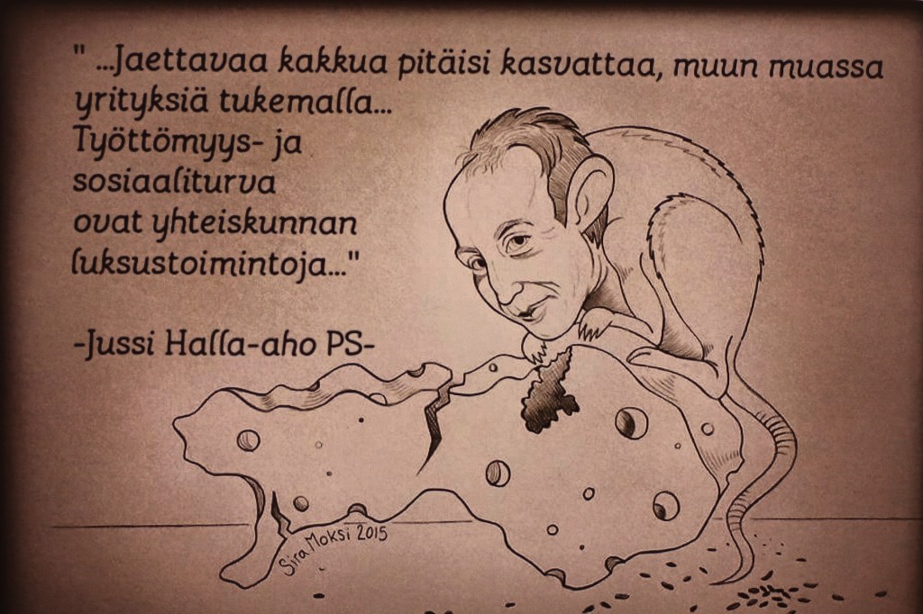 – Ei ole olemassa aihetta, mille ei voisi nauraa. Teen rankkoja, provosoivia kuvia mitkä ärsyttävät monia. Mutta kuvani toimivat myös paineentasaajana, varaventtiilinä jonka kautta voi purkaa turhautumista epäkohtiin. Teen tätä ihmisille. Kuvien takana on aina tarina. Olen tehnyt paljon kolmannen sektorin hyväntekeväisyystyötä, ja itsekin ollut köyhä. Tiedän kyllä mitä se on.