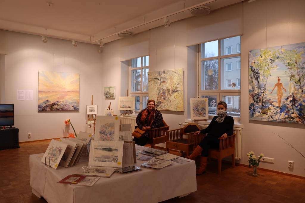 Ystävykset kokivat näyttelytilaan saapumisen aivan samoin kuin minäkin – valo ja värit lumosivat heti.