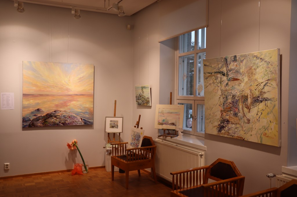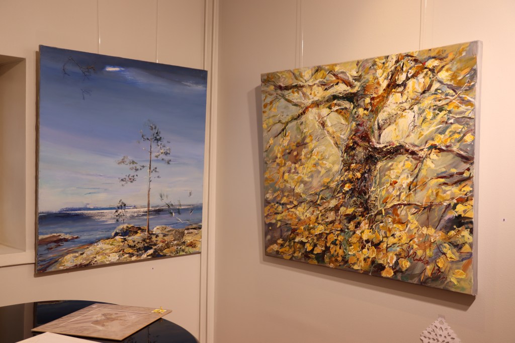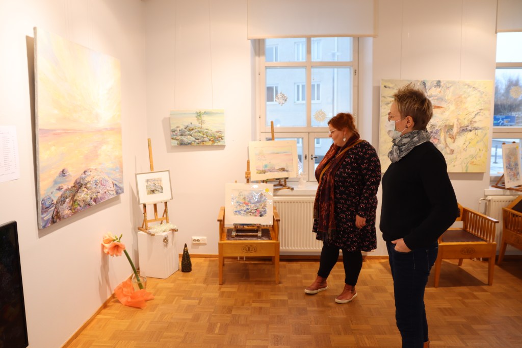 Svetlana on itse valvomassa näyttelyään, ja juttelee mielellään kävijöiden kanssa. Ihmisten tulkinnat, näkemykset ja pohdinnat ovat taiteilijalle merkityksellisiä, ja monet kohtaamiset ovatkin jääneet mieleen.