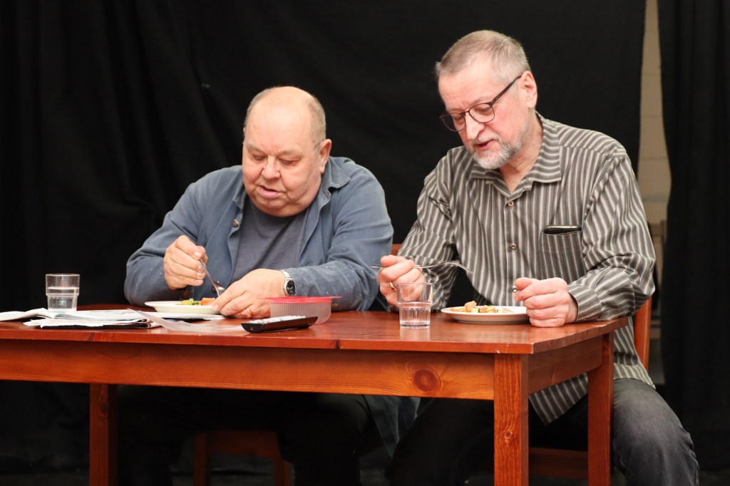 – On mielenkiintoista tehdä näin pienellä porukalla, ollaan päästy tosi syvälle näytelmään monella tapaa. Hyviä keskusteluja on käyty, Pentti kiittelee.