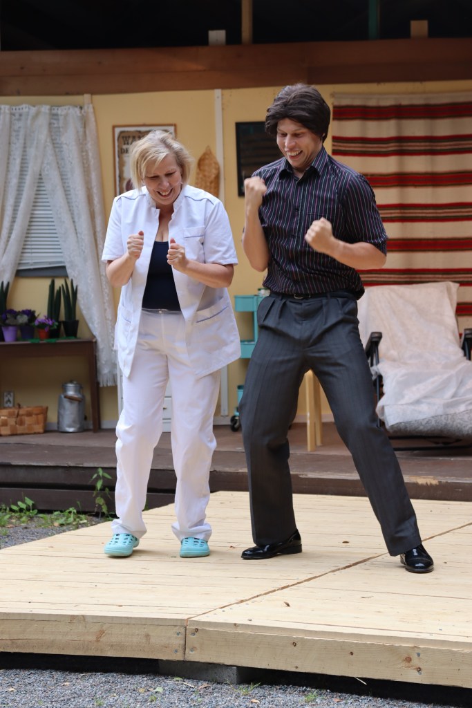 – Joo, nyt harjoitellaan kovaa vauhtia Vuokravaimoa, jonka ensi-ilta on 4.7. Toivottavasti esityskausi toteutuu, ja tulossa on vilkas teatterikesä!