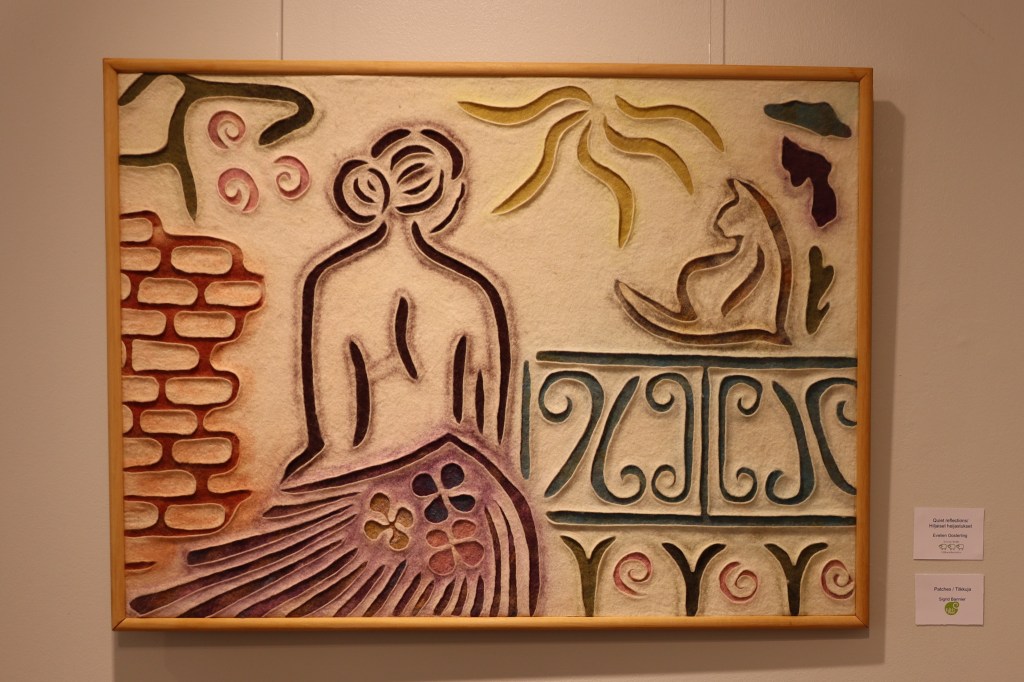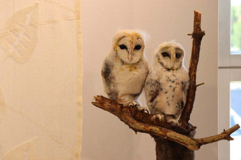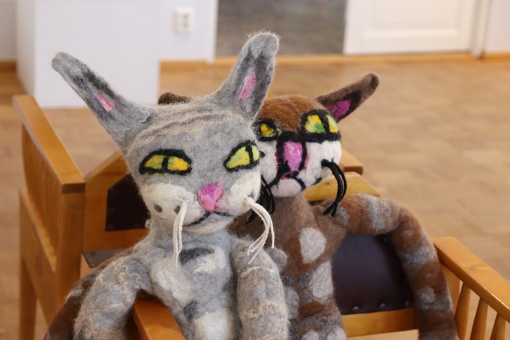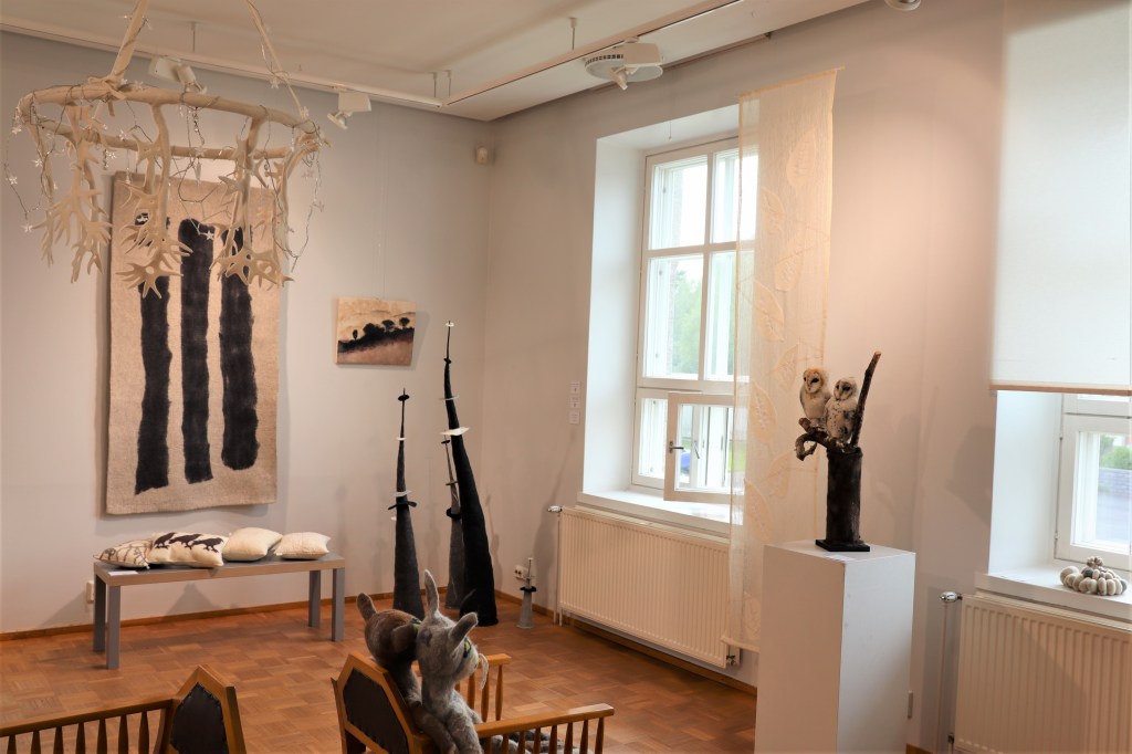 Myös helsinkiläinen Heidi Halm sekä espoolainen Leena Aaltio ovat tulleet ripustamaan näyttelyä, ja ovat näkemäänsä tyytyväisiä. Kaikki neljä naista ovat huovutuksen konkareita ja ennestään tuttuja keskenään, joten näyttelyn kokoaminen sujuu ammattitaidolla.