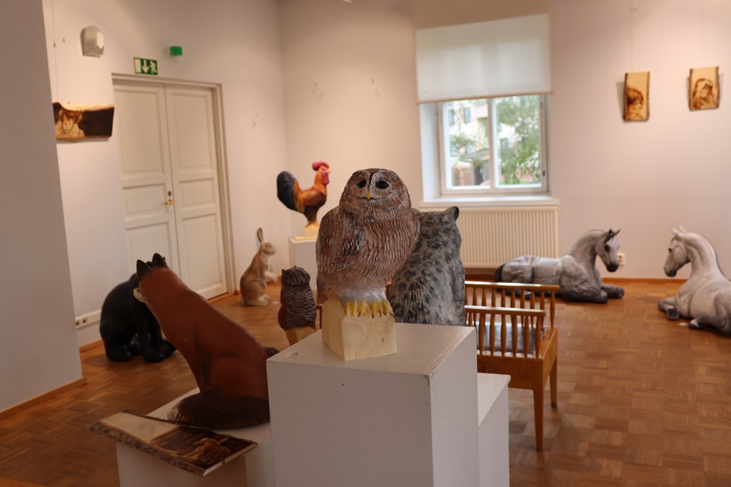 Kun näkee ensimmäistä kertaa Galleria Kivipankin valloittaneet puiset eläinhahmot, ei ihan heti arvaisi millä menetelmällä ne ovat syntyneet. Itse asiassa kun katsoo yksityiskohtia, ilmeikkyyttä ja asentoja, mieleen ei todellakaan tule moottorisaha.
