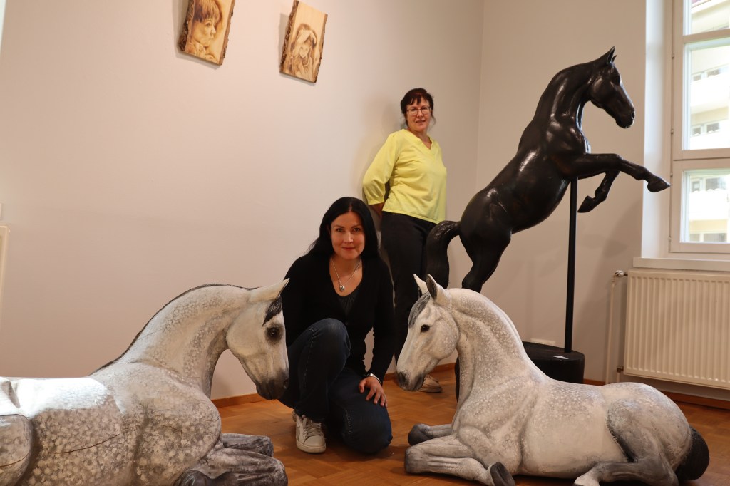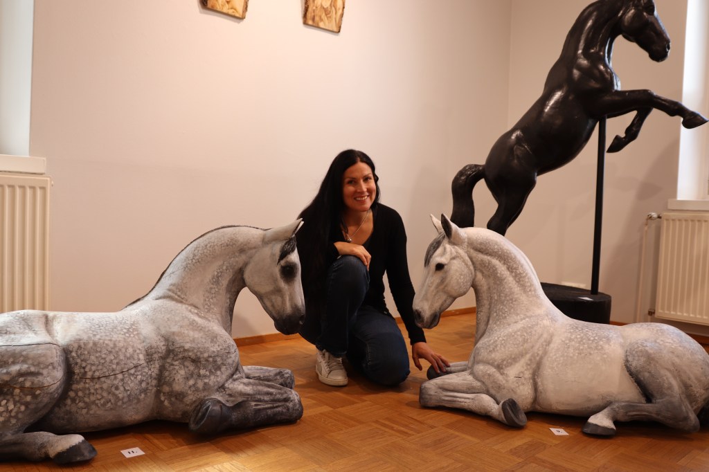 Hevoset ovat tärkeä osa Susannan elämää, ja se näkyy myös hänen taiteessaan ja Kivipankin upeissa hevosveistoksissa. Eine ja Susanna kumpikin tekevät paljon tilaustöitä, ja osa näyttelyn teoksista onkin lainassa yksityiskokoelmista.