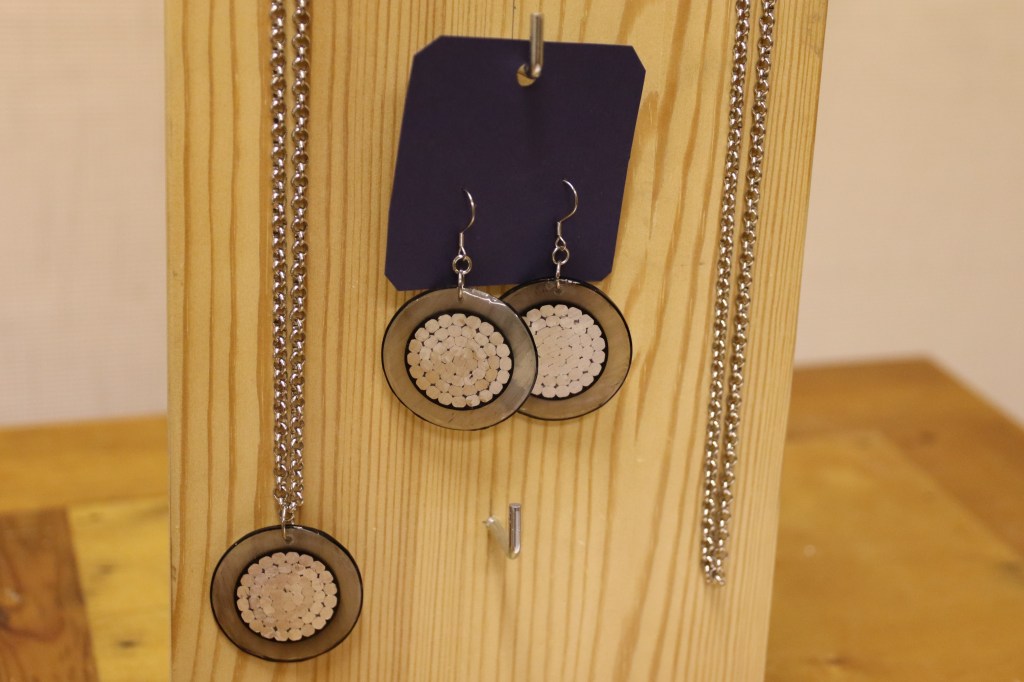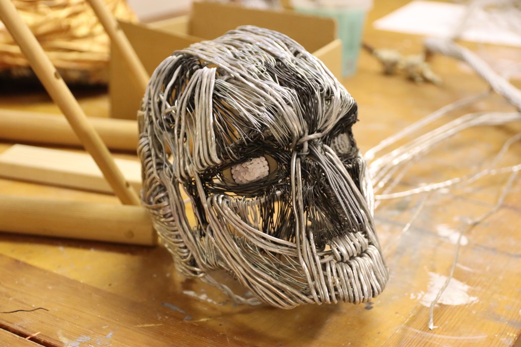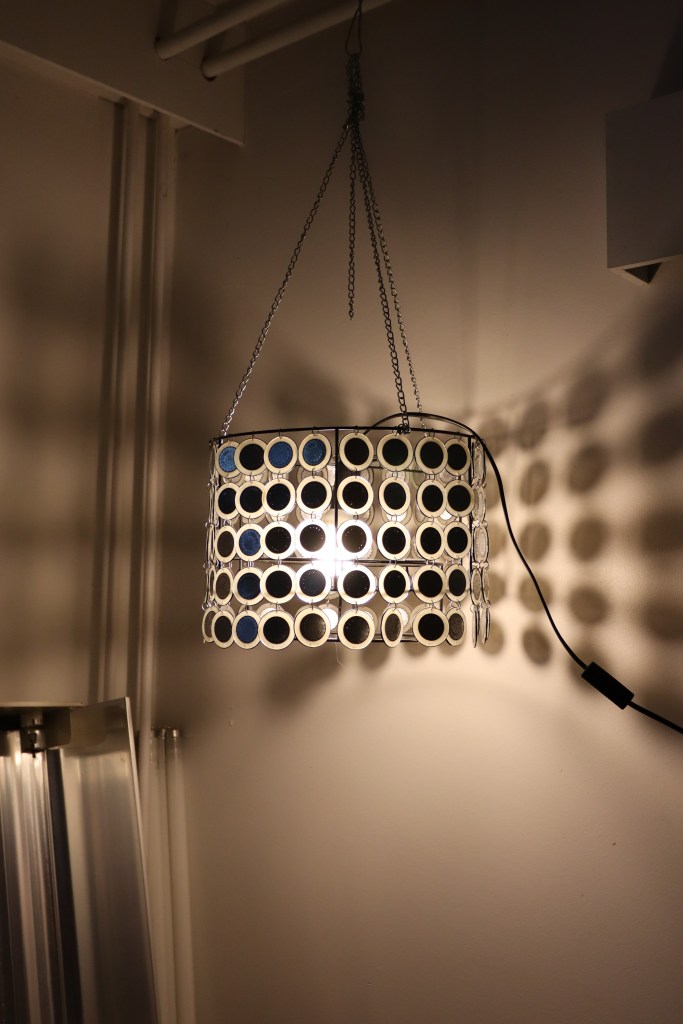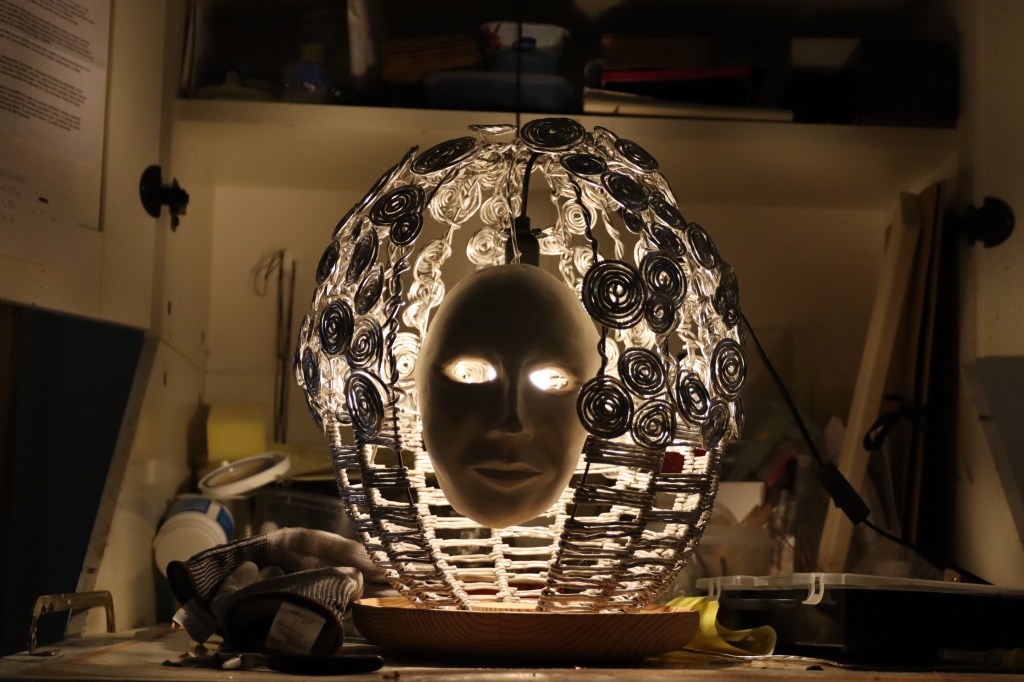 Monet muut materiaalit houkuttelevat myös, ja niistä voi syntyä vaikkapa veistoksellinen installaatio. Seinälaastia, kananmunankuoria, kankaita, harsoja ja hiekkaa on päätynyt Sirpan teoksiin. Peuran selkärangan nikamat vielä odottelevat viimeistä sijoituspaikkaansa. Koruja Sirpa on tehnyt kolmisen vuotta, ja komeilee työhuoneella pari lampunvarjostintakin. On ihmeellistä, mitä kaikkea suurjännitekaapelista saakaan tehtyä!