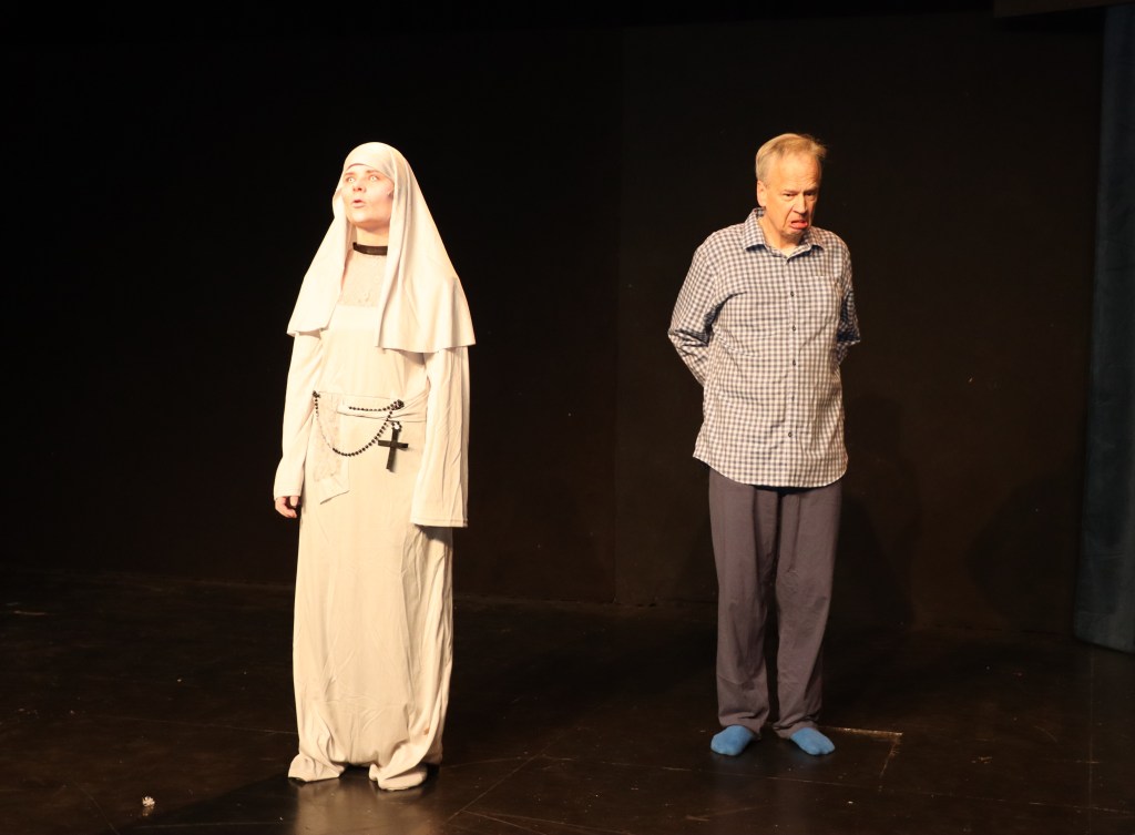 – En ole ennen tehnyt näin montaa roolia yhdessä näytelmässä, tämä on haastavaa mutta samalla mielenkiintoista. Fiilis on todella hyvä ja intoa riittää. On tosi mukavaa tehdä tutun porukan kanssa, ja samalla olen iloinen näistä nuorista; todella taitavia teatterilaisia.