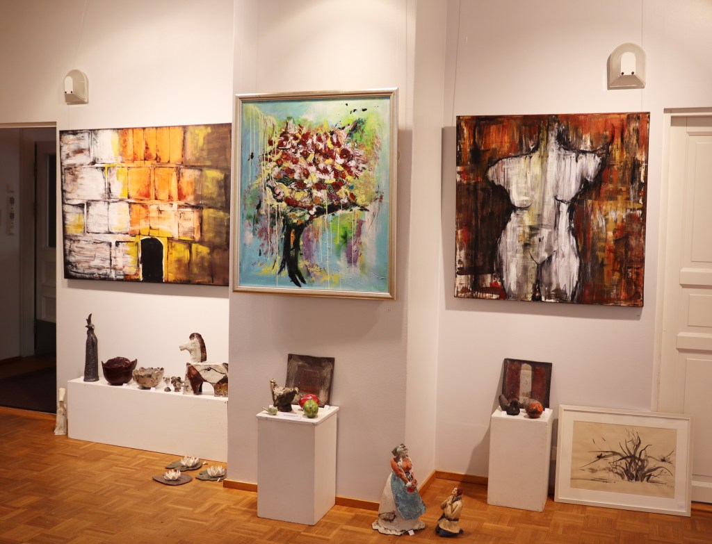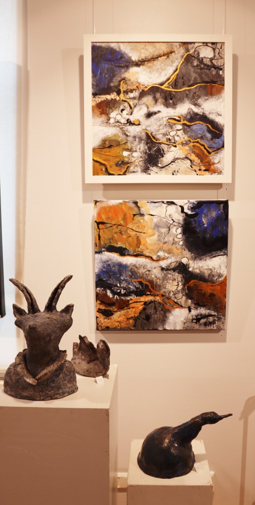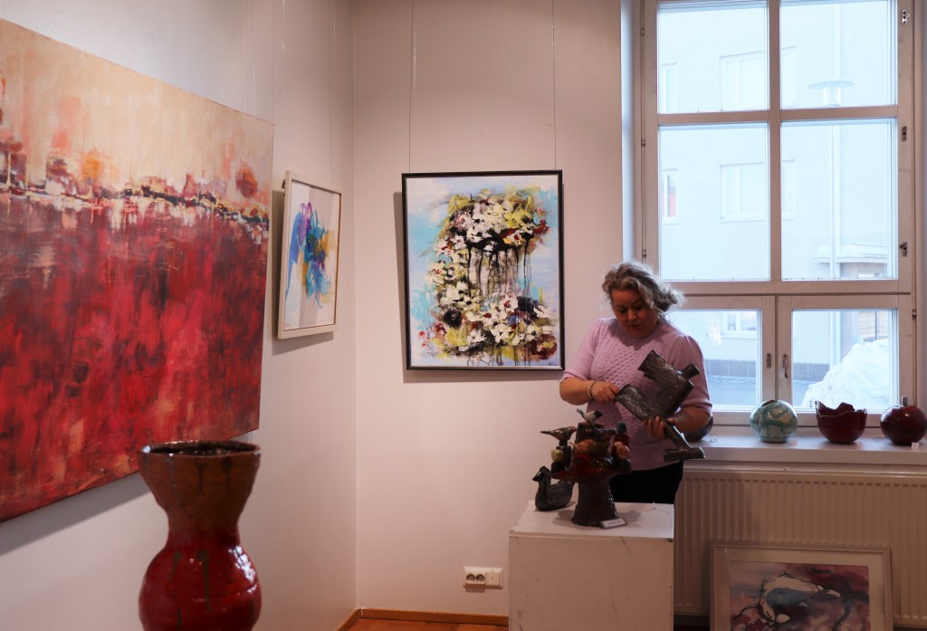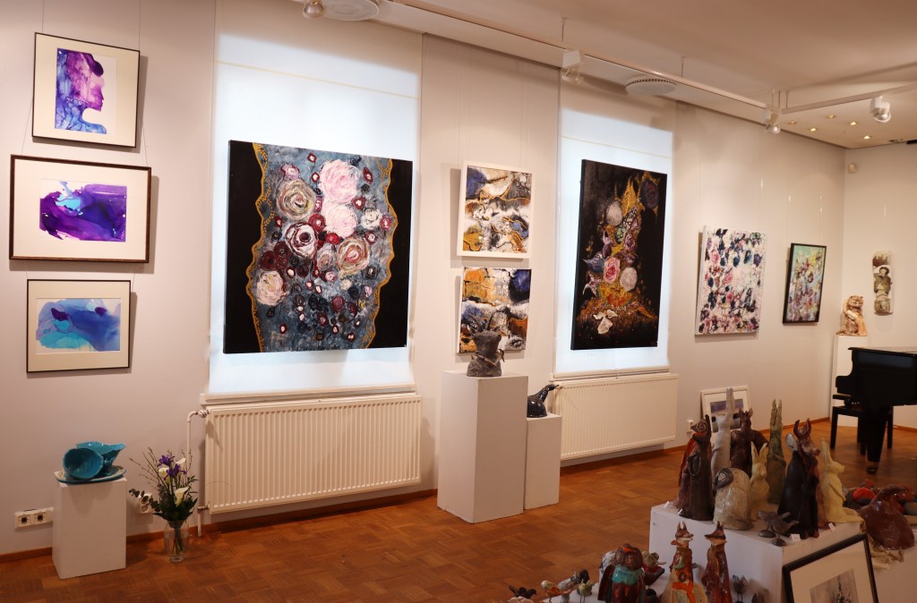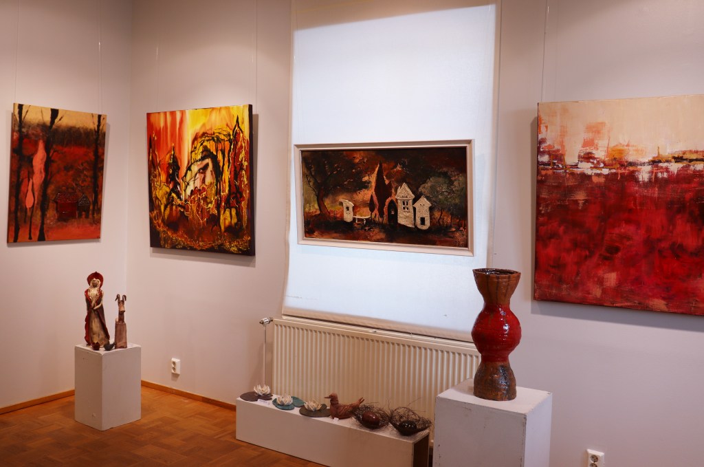 Esillä on maalauksia sekä keramiikkaa, ja eri tekniikoita aina rakukeramiikasta alkoholimusteeseen. Luonto on vahvasti mukana, mutta ei suinkaan perinteisten maisemamaalausten muodossa.