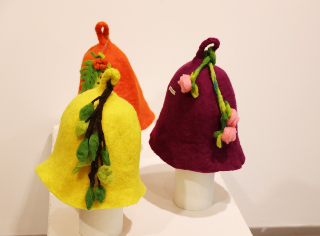 Kivipankin näyttely on hyvä muistutus huovan monista käyttömahdollisuuksista, ja sen taipuisuudesta. Sirpa kertoo, että huovuttaminen on ollut hieman alamaissa, mutta monet merkit maailmalla osoittavat tilanteen olevan muuttumassa.