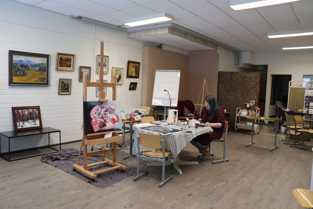 – Tämä on todellinen monitoimitila, kävijä voi tulla taidenäyttelyyn ja samalla kohdata taiteilijan työssään, tai tulla taidekurssille ja samalla nähdä näyttelyn. Matalan kynnyksen paikka, jonne on helppo kenen tahansa tulla. Toimimme edelleen läheisessä yhteistyössä Värinän kanssa. Niin ja vuokraamme tilaa myös muille, vaikkapa kurssikäyttöön.