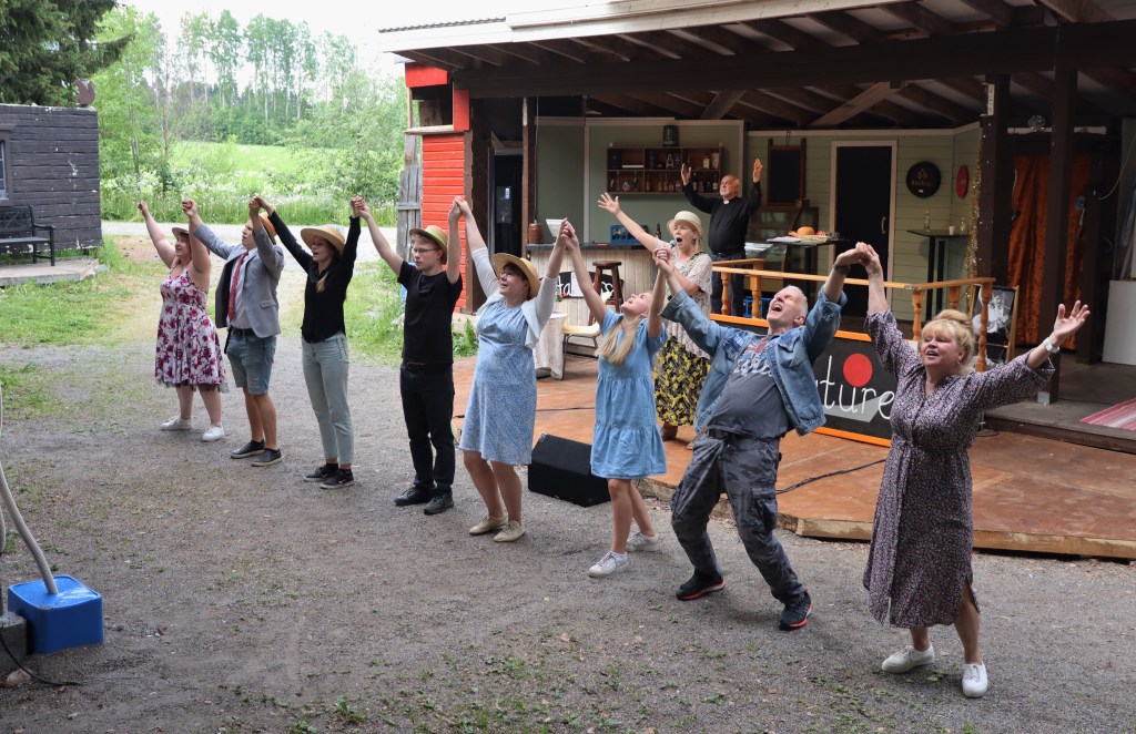 Jos olet liikuskellut Jämsän Pietilässä, Sähkökosken maauimalan tuntumassa viime aikoina, olet saattanut kuulla laulua, musiikkia, naurua ja iloista pulinaa. Jämsän Kesäteatterin harjoitusten hyvä meininki on takuulla välittynyt ympäristöönsä. Musiikkinäytelmä Nuotin vierestä saa ensi-iltansa sunnuntaina 2.7. ja minä pääsin ilokseni kameran kera seuraamaan harjoituksia.