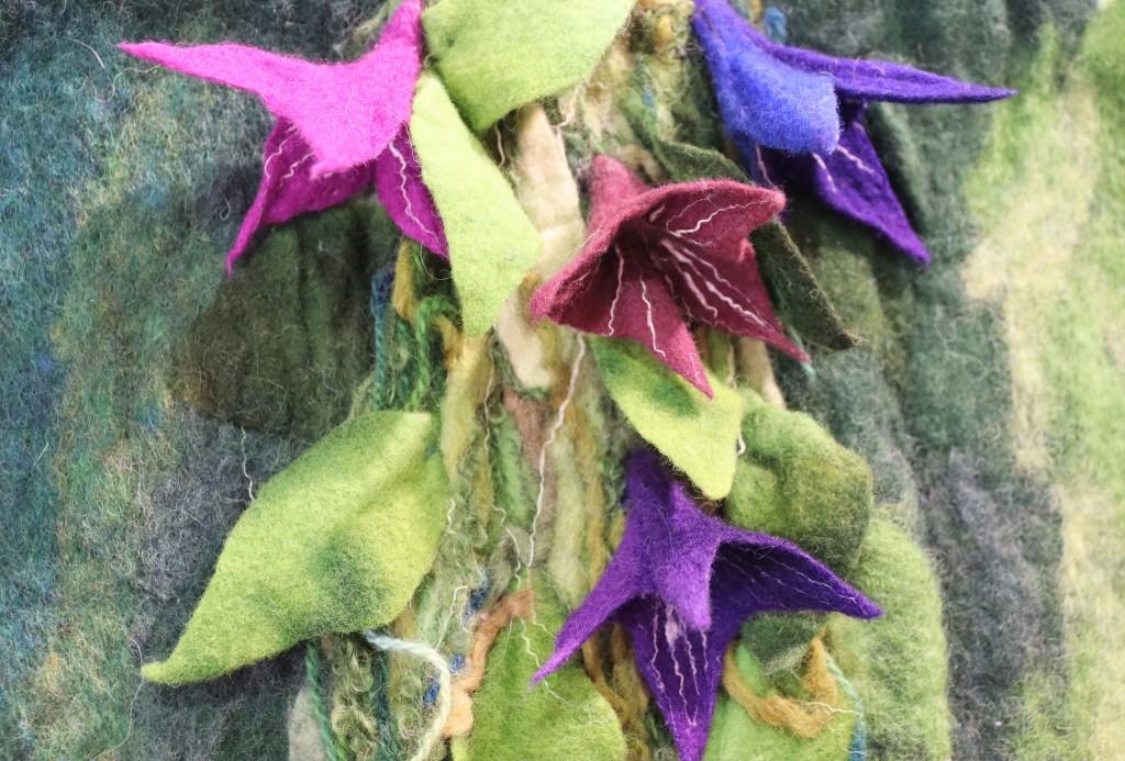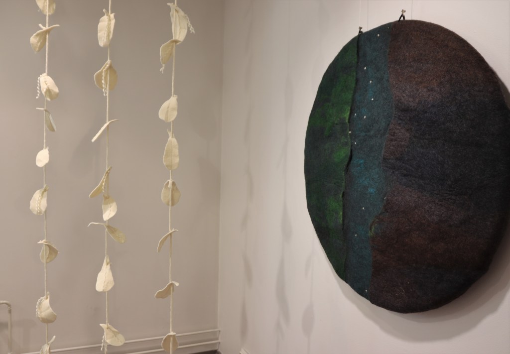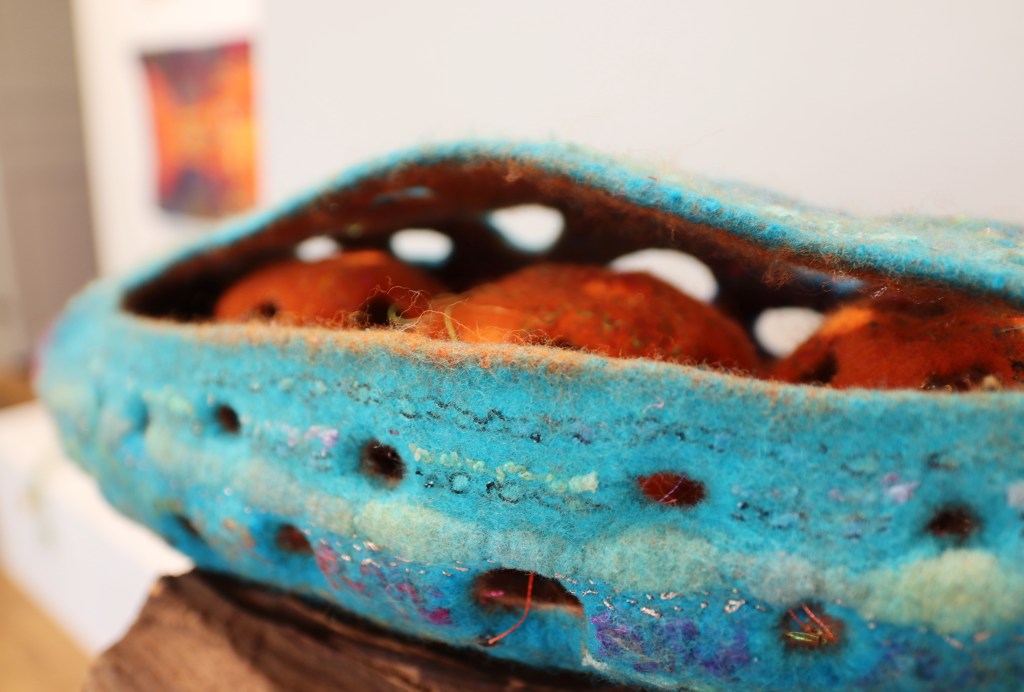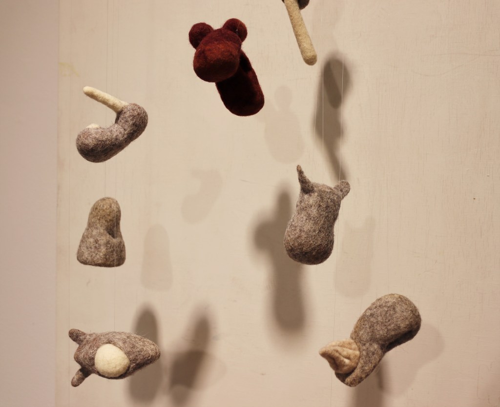 Näyttelyn teema, Muotoillen huopaa / Shaping felt on antanut tekijöille vapauden monenlaiseen tulkintaan. Esillä on niin sisustukseen sopivia töitä, seinätekstiilejä, koriste-esineitä, veistoksia kuin korujakin.