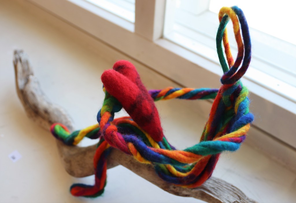 – Tykkään käydä muutenkin näyttelyissä, ja arvostan erityisesti käsityötaitoa. On upeaa nähdä miten moneen huopa taipuu, tämä on mielenkiintoinen yhdistelmä käsityötä ja taidetta. Ja pidän väreistä, niitä täällä on paljon.