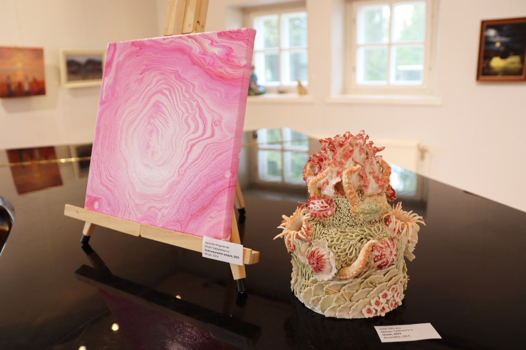 Agnieszka Wagenbrethin (Virtain Taideyhdistys) maalaus ja Kristi Viita-ahon (Mäntän Taideseura) keramiikkaa.