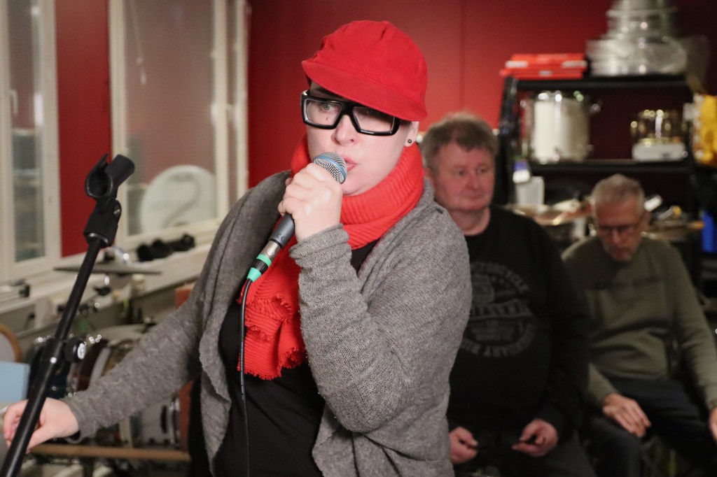 Jukan sanoittamia biisejä on valtava määrä, noin 300, joten valinnanvaraa totisesti riitti. Konsertissa kuullaan 17 kappaletta, jotka muodostavat varsin monipuolisen kuvan tuotannosta. Pääsin ilokseni kameran kera seuraamaan treenejä, ja usean biisin kohdalla huomasin hämmästyväni; ai nämäkin sanat ovat Jukan!