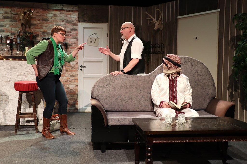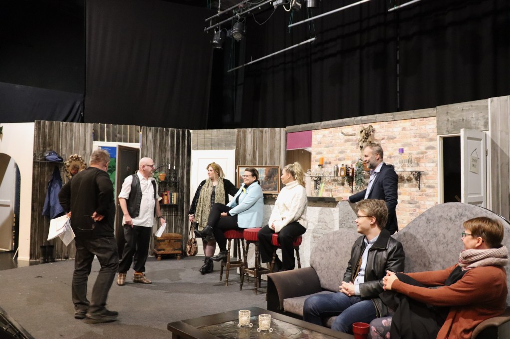 – Hauska näytelmä, jossa henkilöillä on suuret puheet, mutta loppujen lopuksi ollaan aika tavanomaisia tyyppejä. Haastavaakin on, rytmi on tiivis ja ajoitusten kanssa saa olla tarkkana.