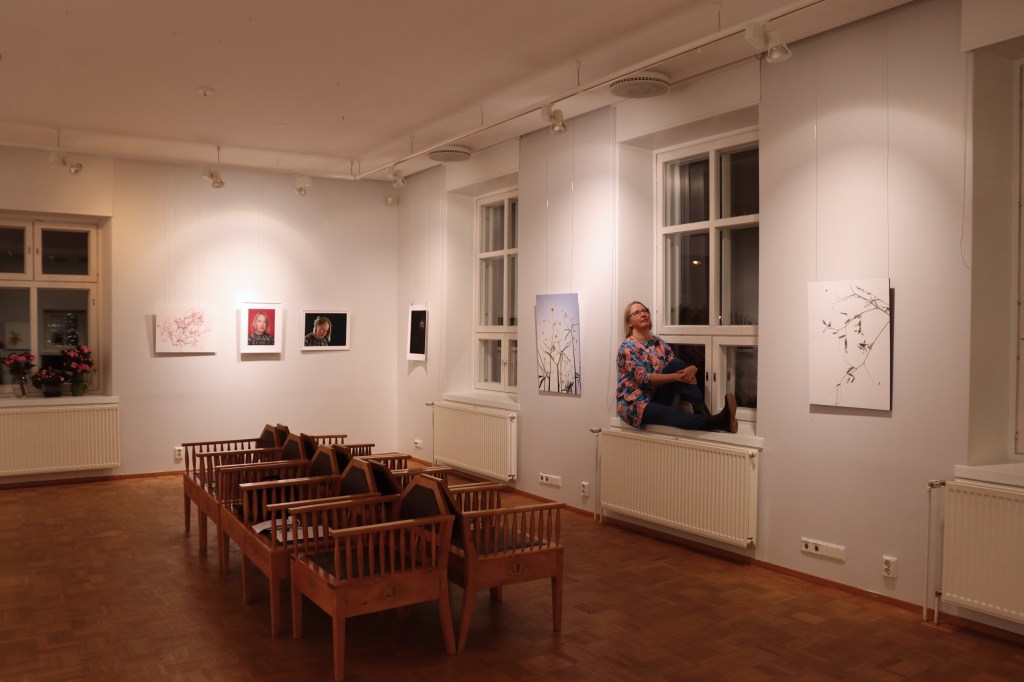 – Pari vuotta sitten olin ystäväni valokuvanäyttelyssä Jyväskylässä, ja sanoin miehelleni ääneen mieleeni nousseen ajatuksen: haluan itsekin pitää oman näyttelyn, ja voisin sillä juhlistaa 50-vuotissyntymäpäivääni. Noh, nyt se vuosi sitten on, ja näyttely on tässä. Tuntuu kyllä todella hienolta.