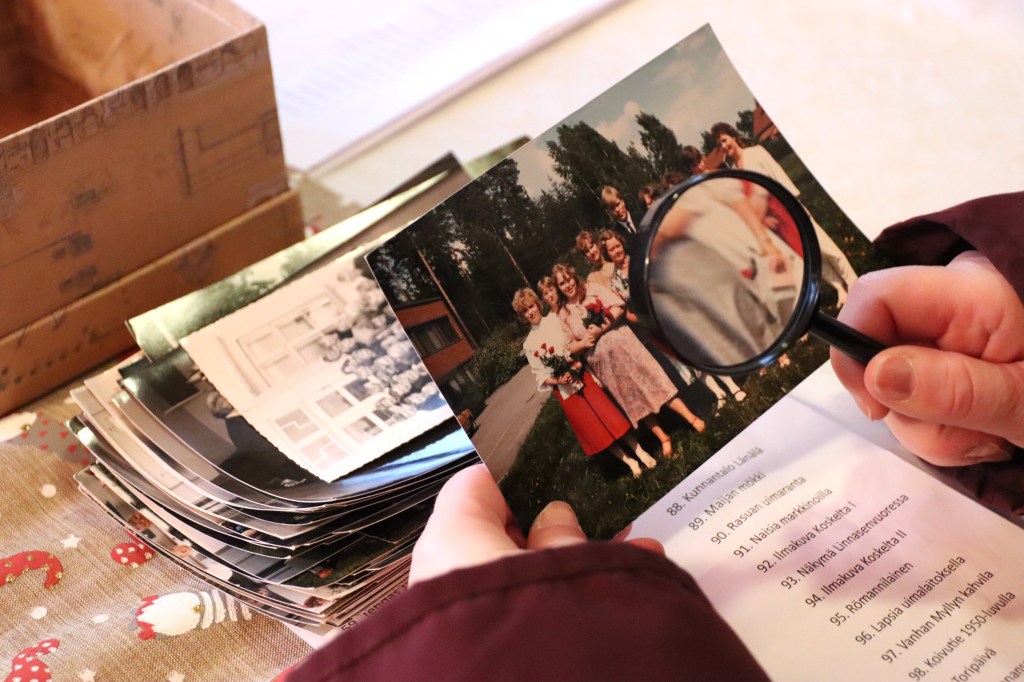 Suurennuslasin kanssa kuvia tutkaili myös Anna-Maija Silván.