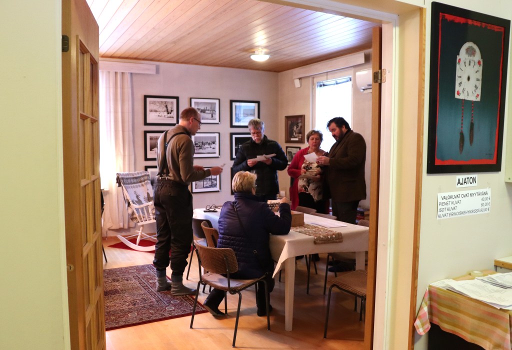 – Useita tuttuja, sukulaisia ja oma isäkin on jo kuvista löytynyt. Ja Tiinakin on mukana yhdessä ryhmäkuvassa. Kyllä täällä ainakin omalle ikäryhmälle, 50 plus, on vaikka mitä kiinnostavaa, paljon herää muistoja, Kalle kommentoi hymyillen. Näyttelyn kaikki kuvat ovat myynnissä, ja pariskunnan mukaan tarttuikin muutamia irtokuvia, jotka saa saman tien ostaa mukaansa. Seinillä olevien kuvien lisäksi nähtävillä on suuri määrä irtokuvia, joita voi tarkastella vapaasti. Niiden äärelle kerääntyikin moni suurennuslasin kanssa.