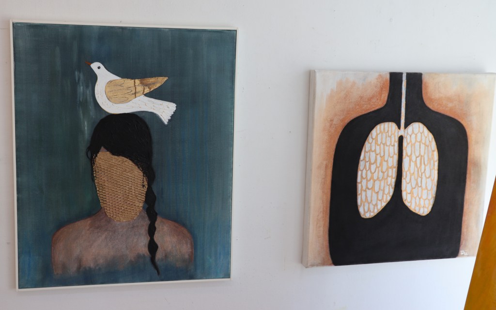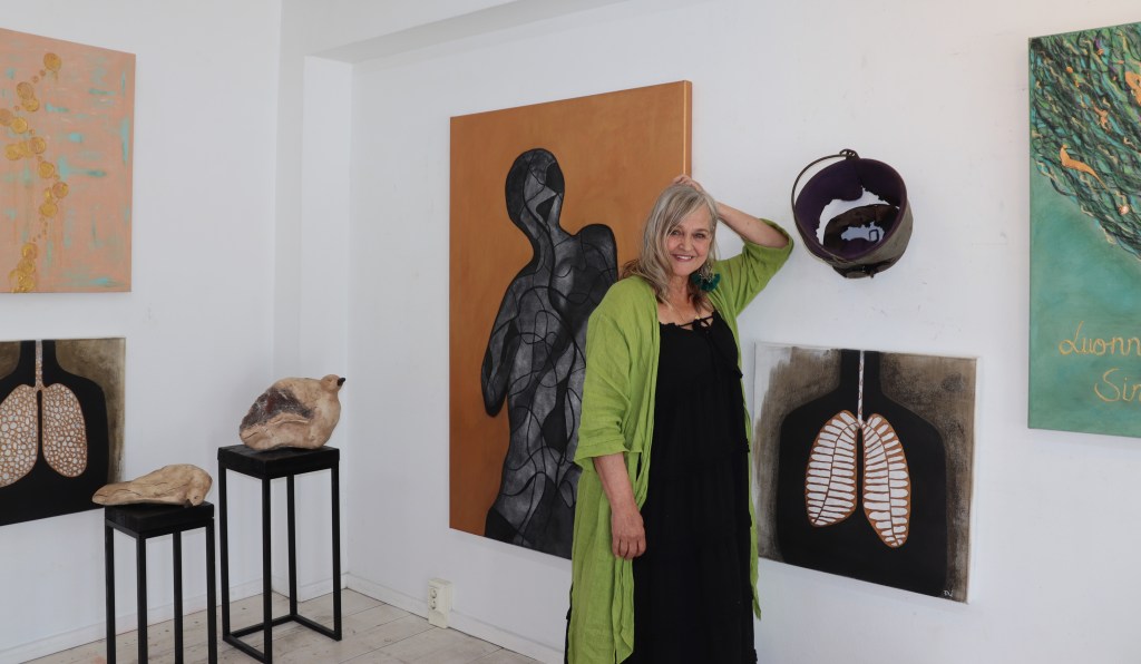 Piippa Mutikainen taidegalleriassaan.
