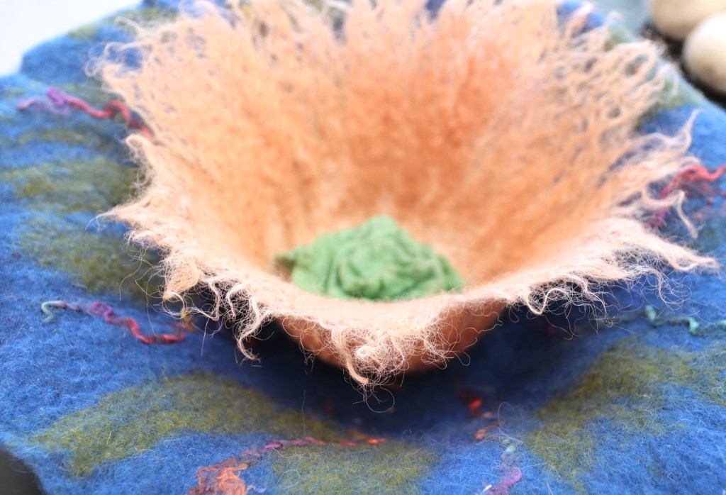 – Tämä on tosi hieno ja kiinnostava kokonaisuus, Heidi kiittelee ja lisää, että neulahuovutus on hänelle itselleenkin tuttu tekniikka.