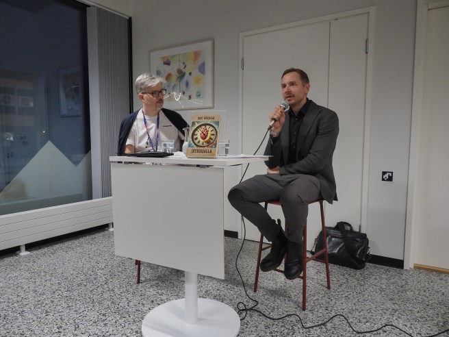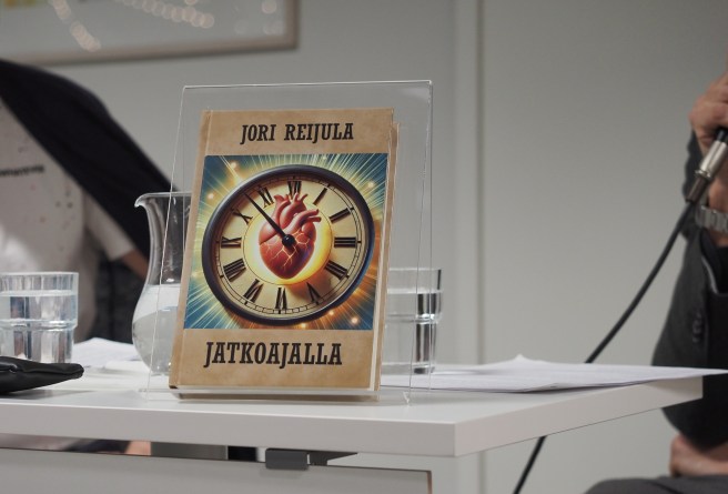 Mutta nyt helmikuussa 2025 Jämsän kirjaston vieraana Jori on ennen kaikkea kirjailijan roolissa. Kirjastolla haastattelijana toimi kirjastonhoitaja Tommi Tapiainen.