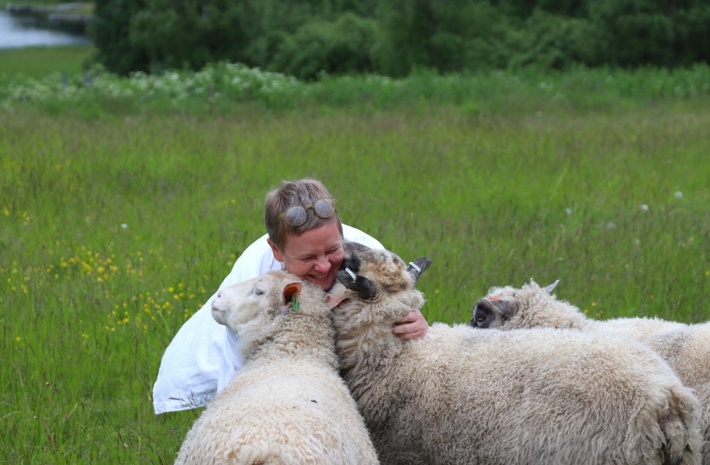 – Täällä voi majoittua, aitassa on nukkumatilaa ja on meillä tuo residenssikin. Järjestän myös nytriittejä – en pidä retriitti-sanasta, joten kehitin termin nytriitti. Ne ovat lepoa päälle, ja niitä voidaan räätälöidä toiveiden mukaisesti. Halutessaan voi yöpyä, osallistua eläintenhoitoon, meloa, tehdä taidetta, kerätä yrttejä – ihan miten itse haluaa. Saa haahuilla vapaasti. Voin myös opettaa villan karstaamista ja kehräystä, eräs ranskalainen kutoja ottikin juuri yhteyttä, ja nyt hän on tulossa tänne oppiin.