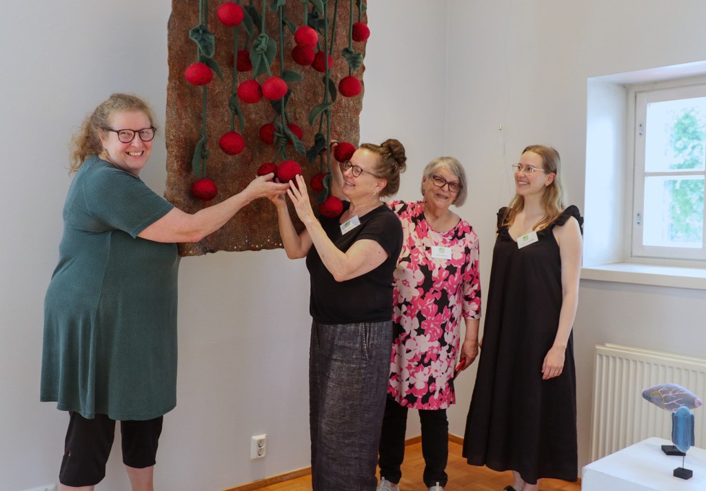 Tiina Mäki, Kikka Jelisejeff, Sirpa Mäntylä ja Nikita Jelisejeff Liis Pihlikin teoksen äärellä.