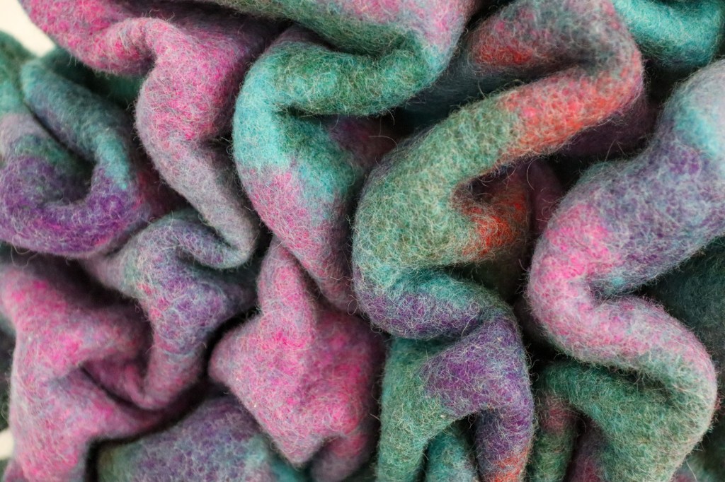– Huovan moninaisuus, erilaisten tekniikoiden käyttö, huopataiteilijoiden loputon luovuus jaksaa kerta toisensa jälkeen innostaa ja yllättää. Kyseessä on uskomattoman monipuolinen materiaali, plastinen ja niin monin tavoin muotoiltavissa. Juuri tämä huovassa kiehtookin. Tässäkin näyttelyssä on nähtävillä se miten huovasta voi tehdä herkkää ja kevyttä, vahvaa ja tiivistä, oikeastaan mitä vain.